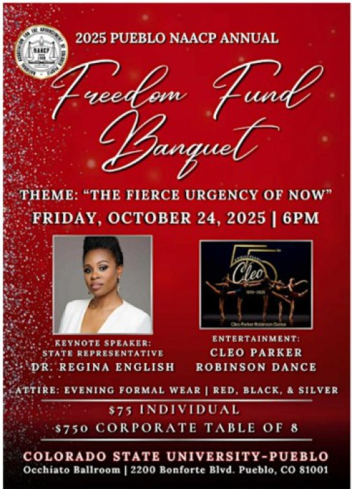 We are currently accepting sponsorships and donors for the annual Freedom Fund Banquet. Please email naacp4005@gmail.com for information. Make sure you get your tickets for the Banquet Oct 24, 2025 at CSU-P Occhiato Ballroom 6p- 11p. Attire: Evening Formal (Red, Black, Silver).